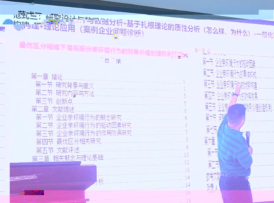随後,代軍教授聚焦于“如何做好MPAcc學位論文”這一核心議題,進行了系統而全面的闡述。他從論文撰寫的關鍵環節入手,深入講解了如何明确論文選題,如何寫好摘要、研究背景、研究意義,如何進行有效的文獻綜述,如何選擇并運用恰當的研究方法與分析工具,如何提煉論文創新點、構建嚴謹的邏輯框架等。代教授強調,一篇優秀的MPAcc學位論文應當緊密結合會計實務,注重問題導向,力求在理論深度或實踐價值上有所貢獻,并嚴格遵守學術道德與規範。
